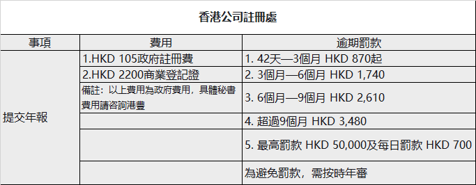 香港公司年審費用及逾期罰款